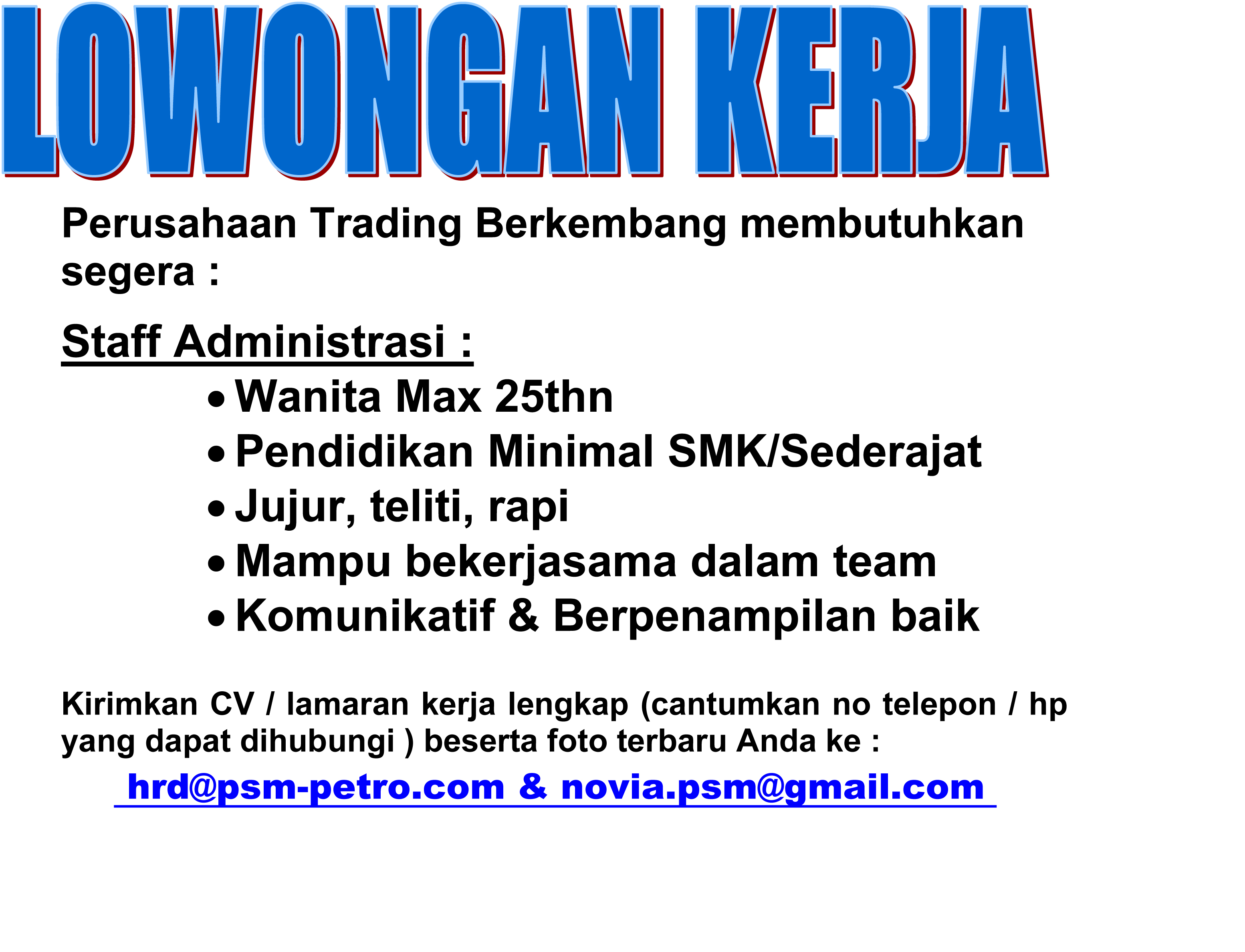 DIBUTUHKAN STAFF TOKO ONLINE